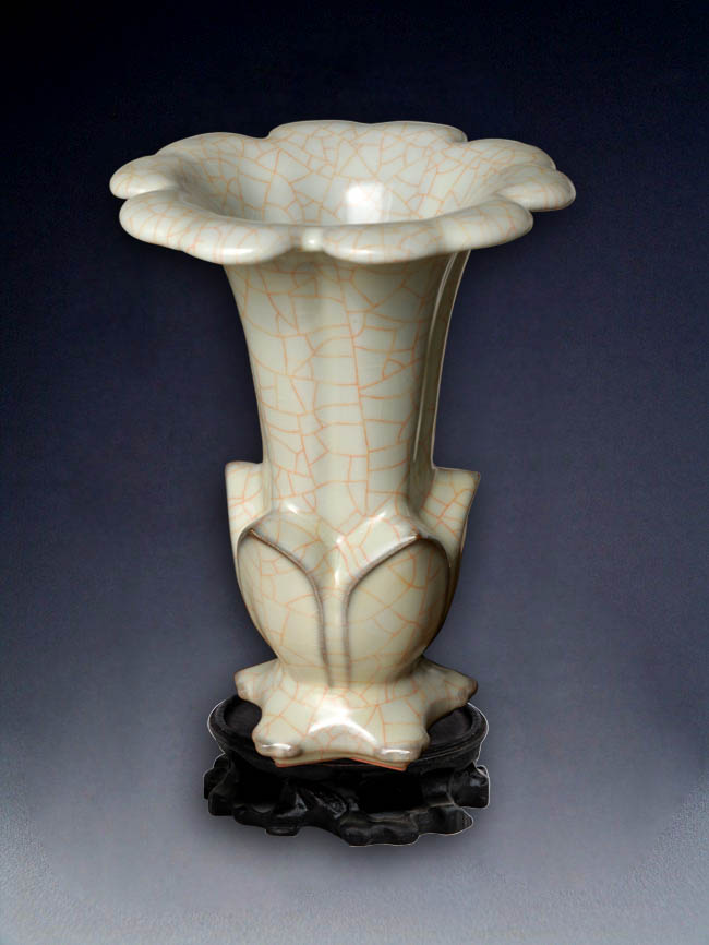 官瓷焦桐尊(五福临门·桐花觚),是官瓷陈连义大师用中国五大名瓷为首的厚重官瓷为文化载体;以党的好干部焦裕禄在兰考栽的桐树所开的桐花创新设计中国汉代尊为形状;以习近平主席概括党的好干部焦裕禄五种精神“亲民爱民、艰苦奋斗、科学求实、迎难而上、无私奉献”为内涵。陈连义大师经过四年的锤炼继承并创新而成,具有新时期、新常态的时代文化艺术特征。为中国共产党员弘扬焦裕禄精神,做好人民的好干部、好公仆,实现中华民族的强国梦,而创造的文化艺术的精神食粮。焦桐尊系列文化艺术品有“五福临门·桐花觚”“步步高升·焦桐觚”等。焦桐尊系列器形厚重大气、帝王神韵;釉色粉青、圆润如玉、攥之出油;神奇的紫口铁足,龟背片、鳝血纹美轮美奂,让人震撼。 |